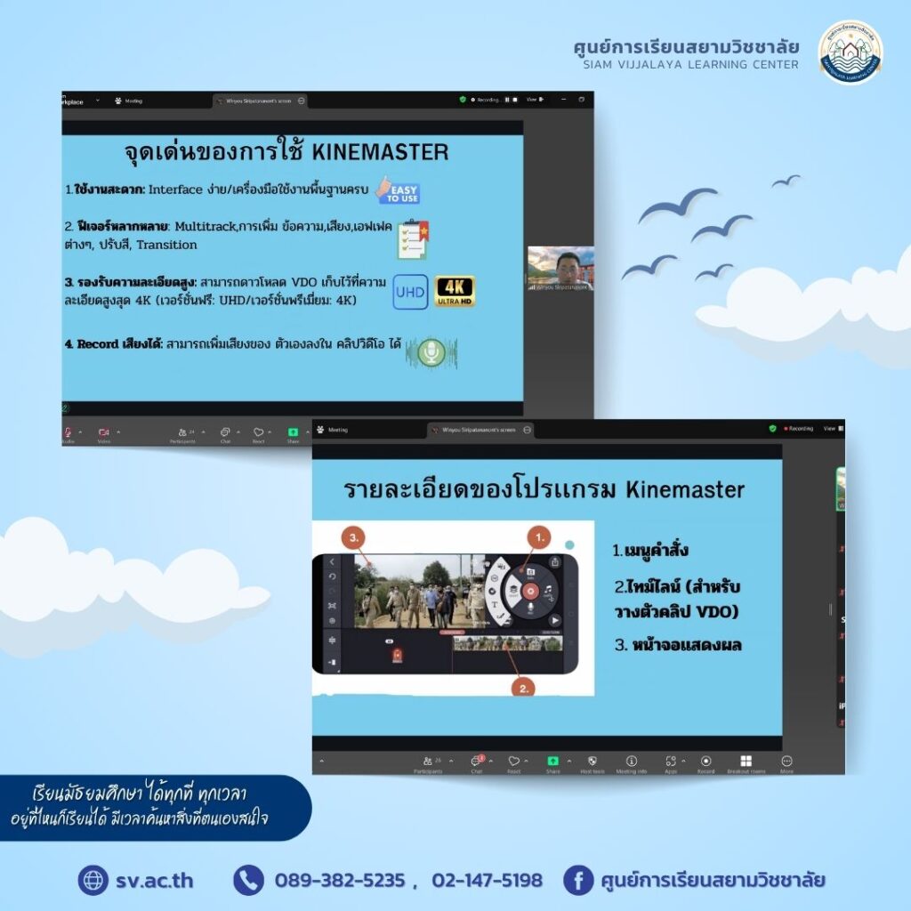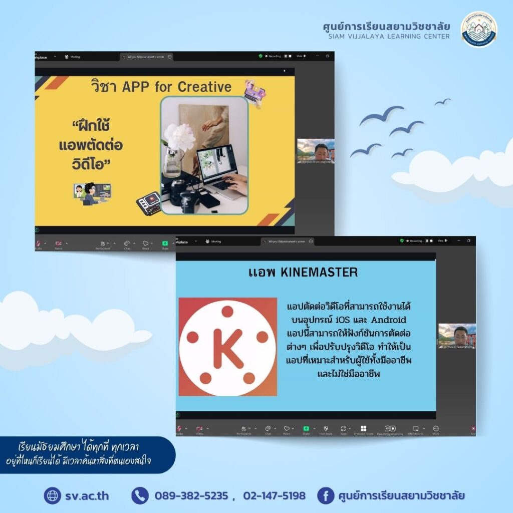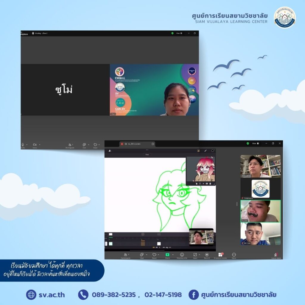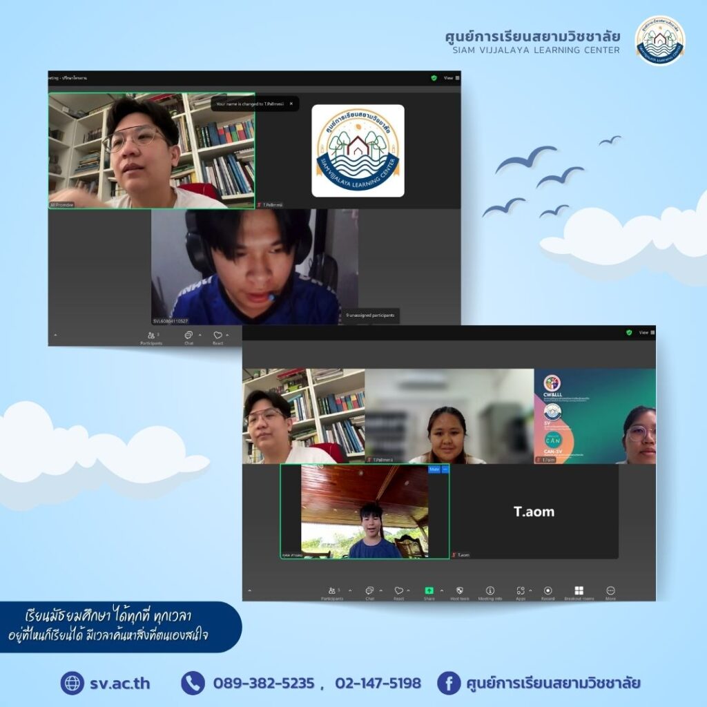 กิจกรรมการเรียนการสอนเสริมสำหรับผู้เรียนศูนย์การเรียนสยามวิชชาลัย พบครูที่ปรึกษาSV Consult Project รายงานความคืบหน้า – อ.จิลล์, อ.อ๋อมและอ.ปาล์ม, และ Life & Future Skill App for Creative หัวข้อ ฝึกใช้แอพตัดต่อวิดิโอ – อ.โฮป เป็นผู้สอน ผ่านทางโปรแกรม Zoom