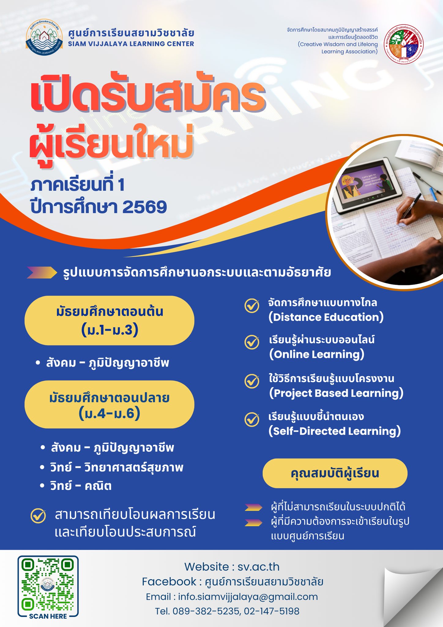 ศูนย์การเรียนสยามวิชชาลัย เปิดรับสมัครผู้เรียน ปีการศึกษา 1/2569
