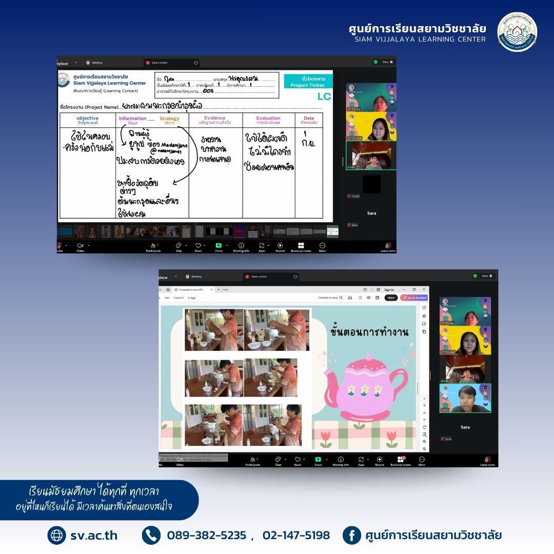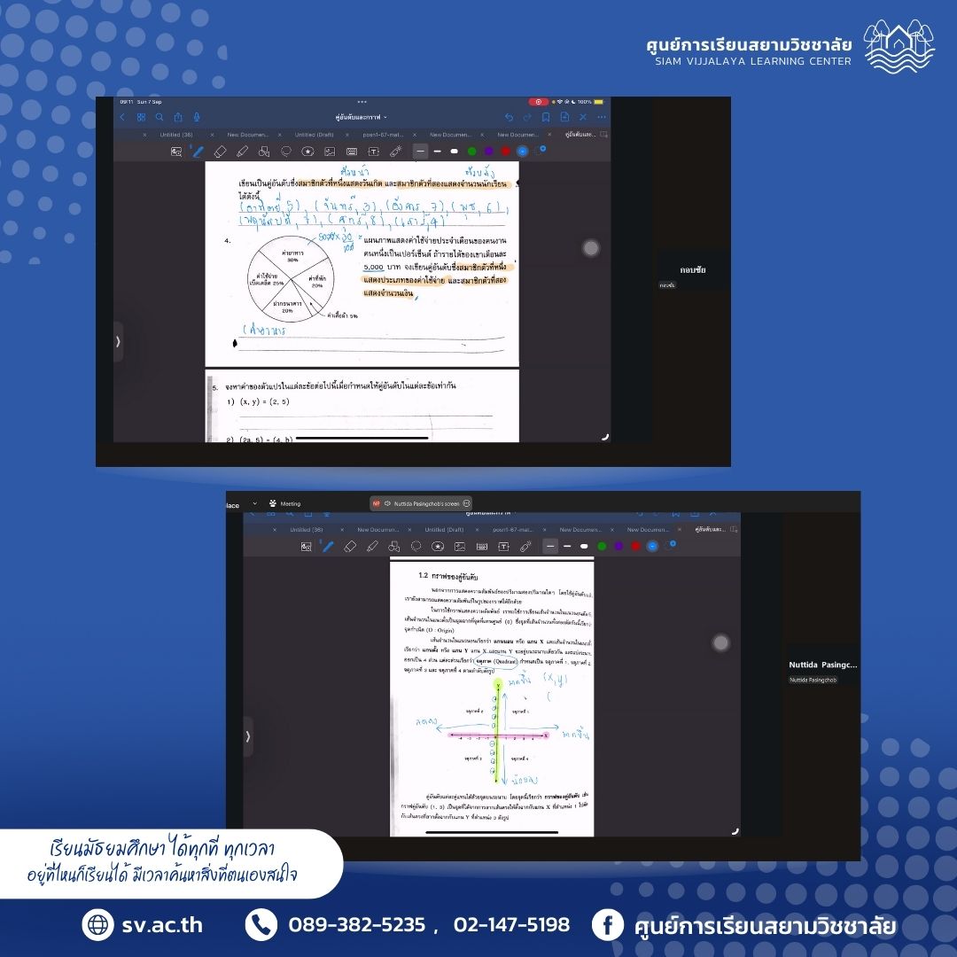 กิจกรรมการเรียนการสอนเสริมสำหรับผู้เรียนศูนย์การเรียนสยามวิชชาลัย พบครูที่ปรึกษา รายงานความคืบหน้าแบบฝึก – อ.อ๋อม, อ.ปาล์ม