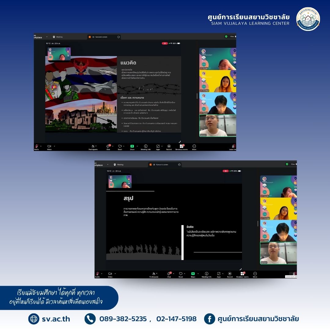 กิจกรรมการเรียนการสอนเสริมสำหรับผู้เรียนศูนย์การเรียนสยามวิชชาลัย พบครูที่ปรึกษาSV Consult Project รายงานความคืบหน้าProject – อ.อ๋อม, อ.ปาล์ม และอ.ปาล์มมี่ และ เรียนเสริม Life&Future Skill App for Creative หัวข้อ ใช้โปรแกรม AI สร้างวิดิโอ – อ.โฮป เป็นผู้สอน