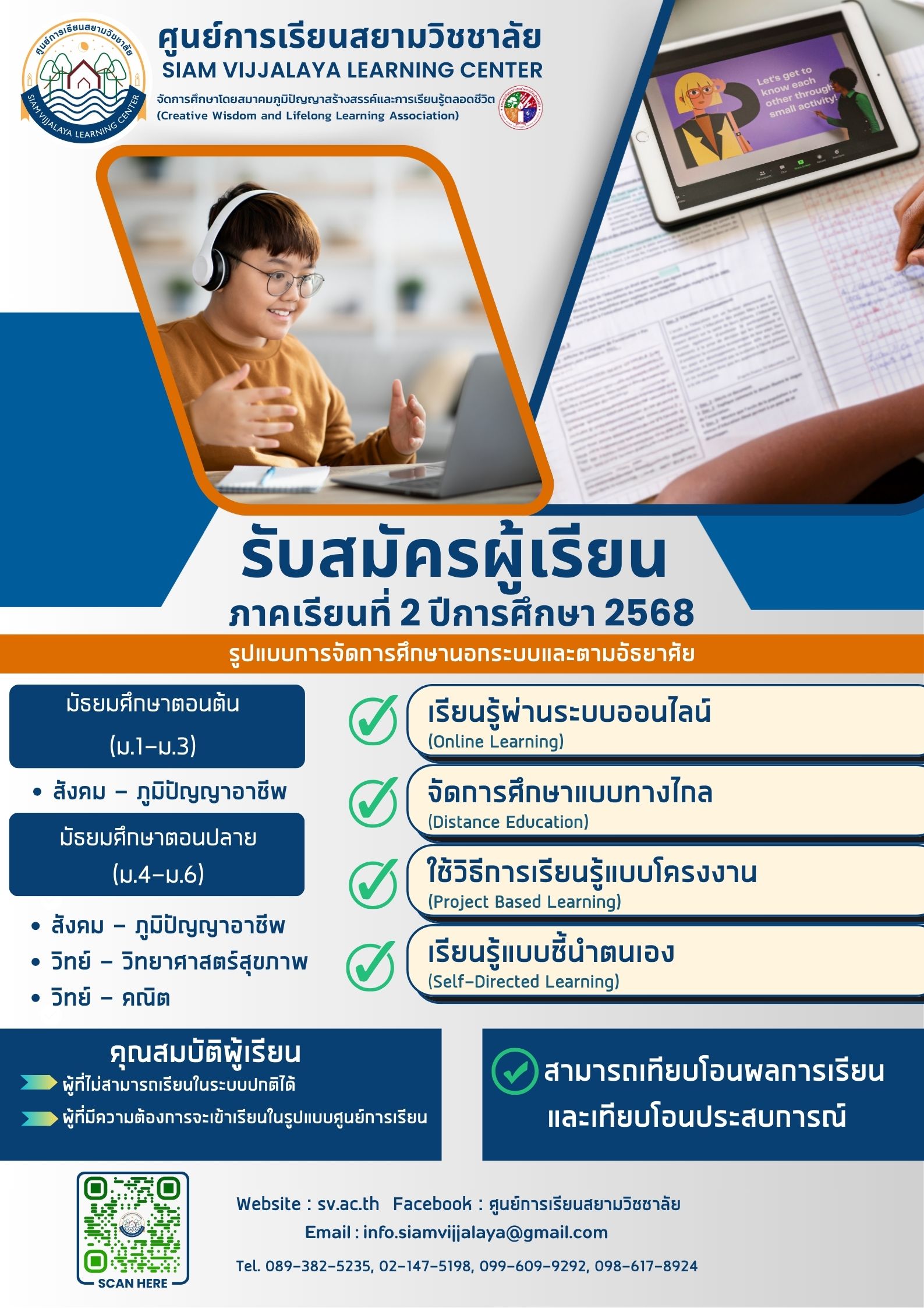 เปิดรับสมัครผู้เรียนระดับชั้น ม.1 ถึง ม.6 ปีการศึกษา 2/2568